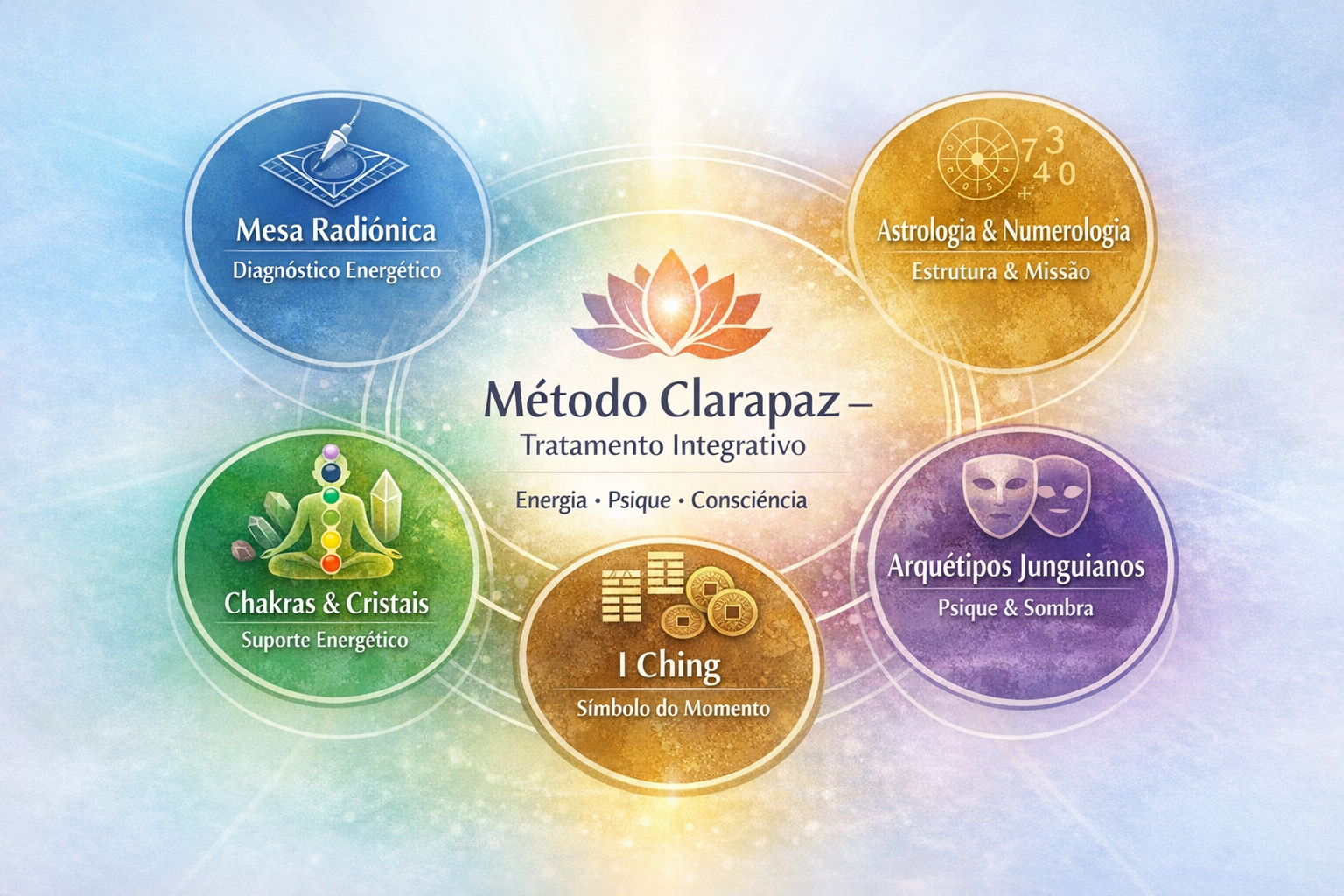 É nesse território que arquétipos de Jung, numerologia, chakras, cores, cristais e práticas meditativas se encontram — não como crenças isoladas, mas como linguagens complementares de autoconhecimento e consciência.