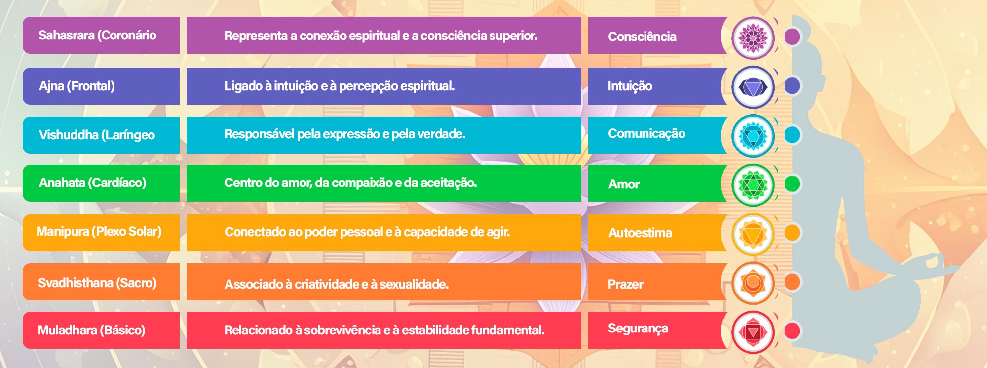 Cada chakra não só tem uma cor que o define, mas também está conectado a emoções específicas e aspectos da nossa existência. Quando em equilíbrio, os chakras contribuem para uma vida saudável e harmoniosa. Práticas como meditação, yoga e terapias de cor podem ajudar a equilibrar os chakras